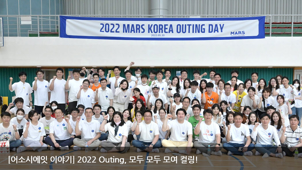 한국마즈는 매년 전 직원이 참석하는 아웃팅을 진행하여 직원 친목 및 단합을 도모합니다. 항상 기발한 프로그램과 푸짐한 상품으로 모든 직원들이 기다리는 행사죠! 코로나 상황에서는 단체로 모여 활동하는 것이 여의치 않아 온라인 방 탈출이나 랜선 워크숍으로 진행되었는데요 2022년 5월 30일 드디어 첫 오프라인 아웃팅을 하게 되었답니다. 야호!