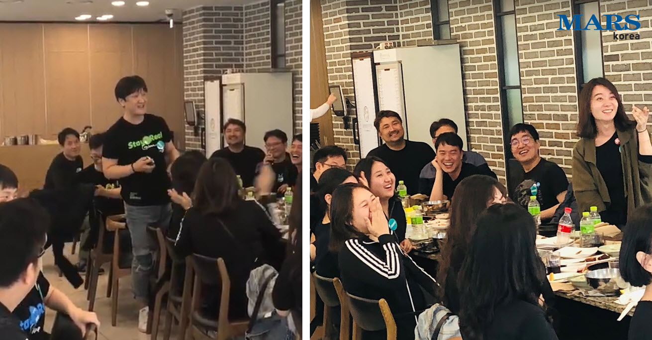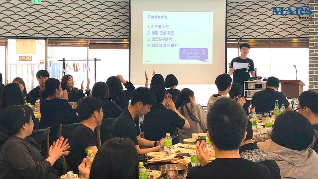 식사가 마무리 되어갈 때쯤 Daniel의 진행으로 미니 게임 이벤트가 진행되었습니다. 상품이 걸린 영화 제목 초성과 명대사(성대모사를 해주셔야 했던) 퀴즈, 요즘 신세대들이 사용하는 신조어 퀴즈 그리고 Mars와 관련된 퀴즈들! Associate 여러분 모두의 열정적인 참여로 정말 즐거웠습니다!,