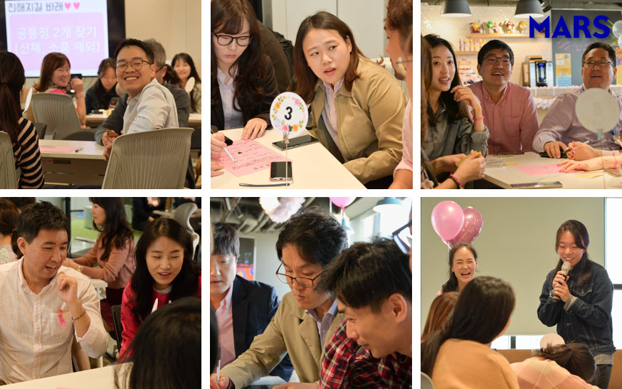 서로 부서나 근속기간이 다른 어소시에잇을 골고루 맞춰 조를 편성하는 게임으로 시작해서, 서로 몰랐던 공통점 찾기로 아이스 브레이킹을 했지요. 이름하여, "친해지길 바래!"